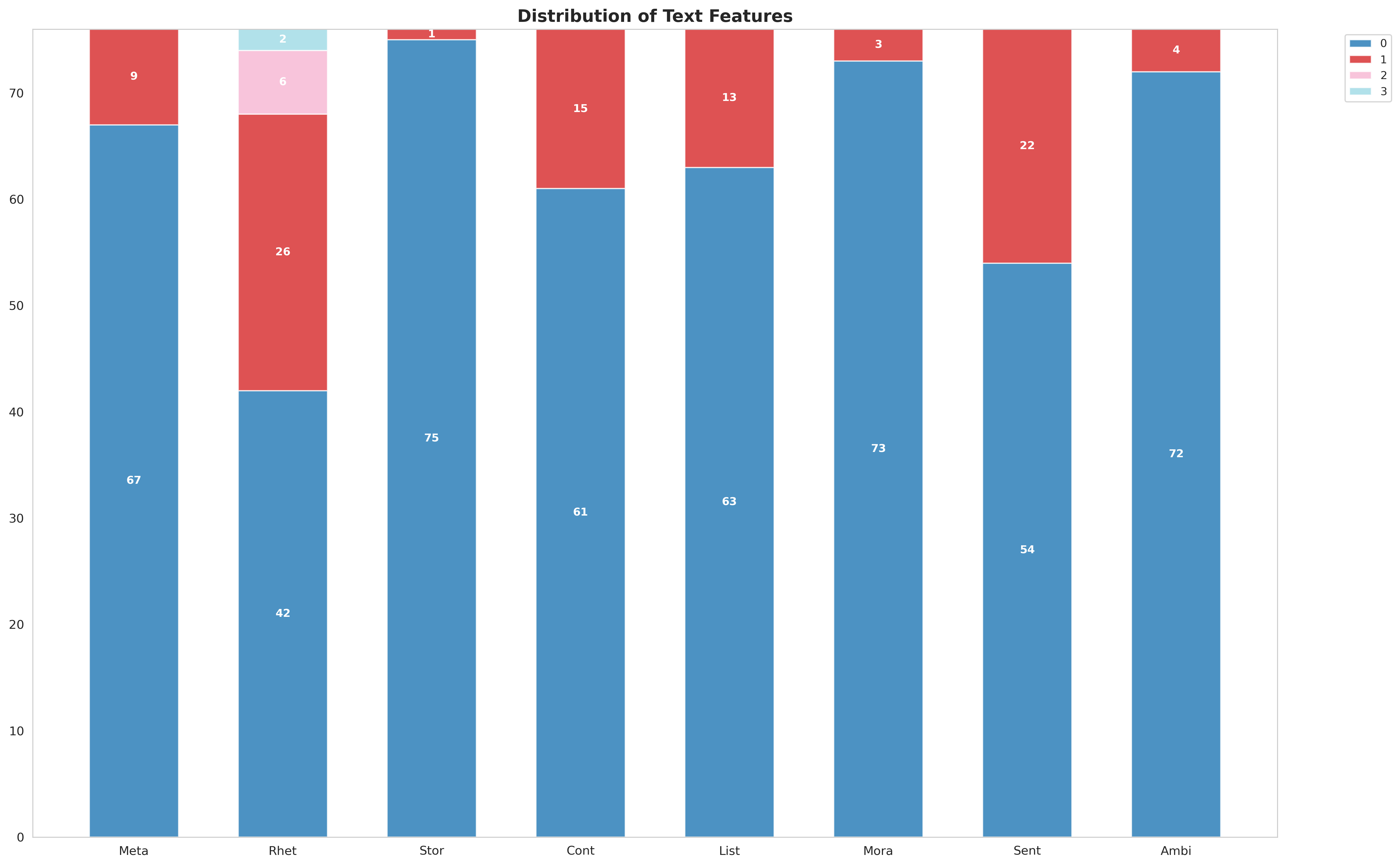 We created 8 interpretable features based entirely on the content of the speech, capturing linguistic nuance. These were used to predict 4 labels that can be inferred from this information. As always, the details are in the Appendix.