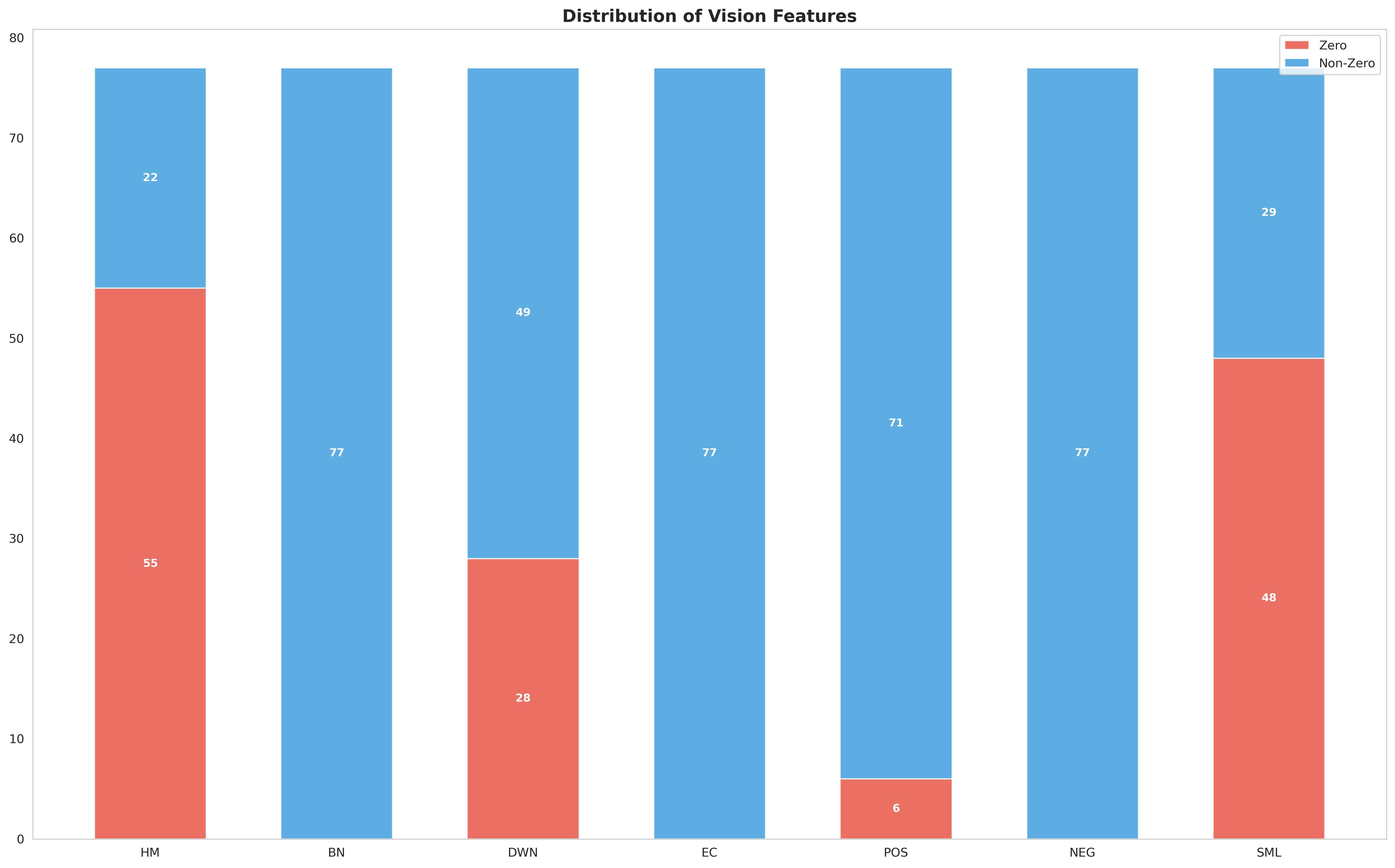 The vision features reply heavily on manual thresholds (gaze, body motion, emotion) informed by three people watching a limited number of different videos. Luckily most counts are non-zero, which means the decision trees can work reliably.
