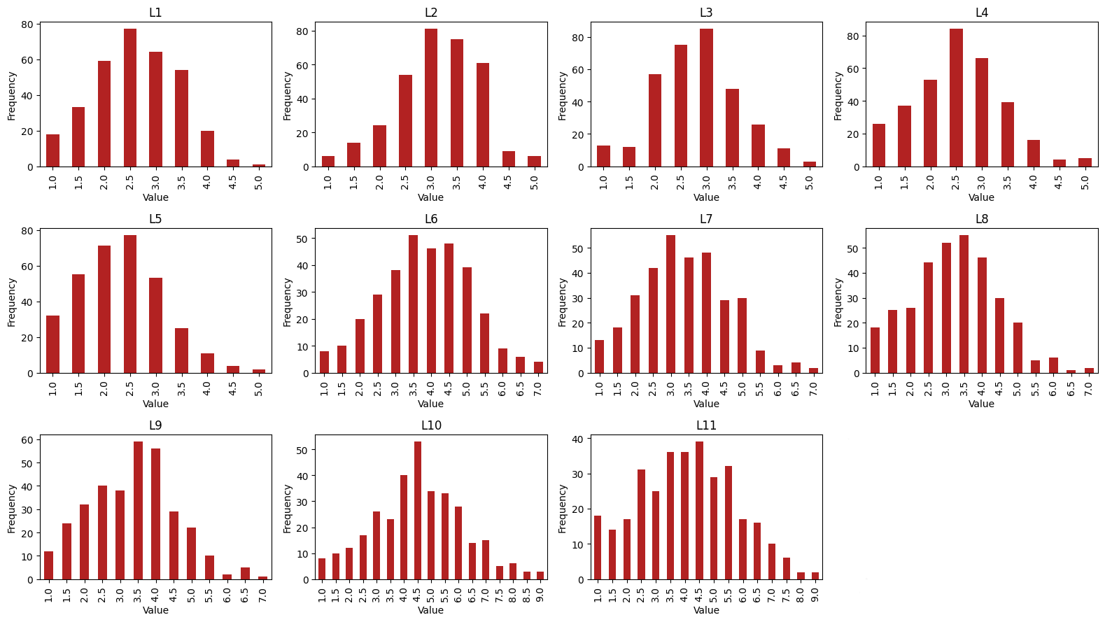 The minimum Pearson correlation coefficient observed in this case is 0.726, with an average correlation of approximately 0.75 in total! This strong correlation may stem from the structure of the survey itself, including the order in which questions were presented and the amount of time respondents devoted to each question. These effects arise solely from the the collected data and are independent of the features extracted in our analysis. It’s unlikely that I give a person a low score on facial expressions if I find them enthusiastic ..